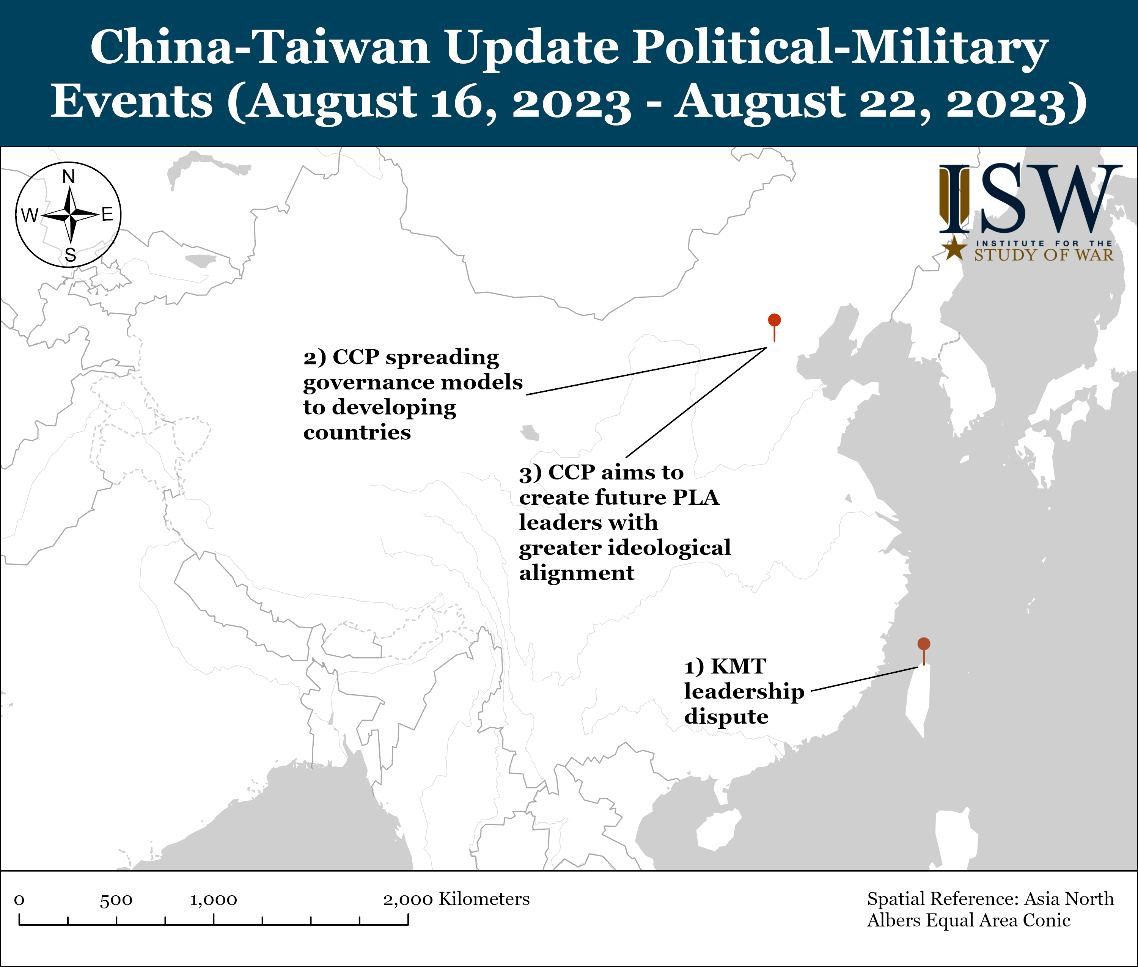 The failure of the KMT to address the internal disputes and regain its footing in the polls likely would deny the CCP its most preferred ROC presidential candidate to influence cross-strait policy. ISW assessed in May that the CCP is framing the ROC presidential election as a choice between peace and war, which provides the party leverage points over the cross-strait policy of the three major Taiwanese political parties.[10] ISW also assessed that this electoral framing would confer leverage over a KMT administration. It would enable the CCP to frame cross-strait economic integration and political dialogue on the PRC’s terms as necessary to maintain peace.[11]