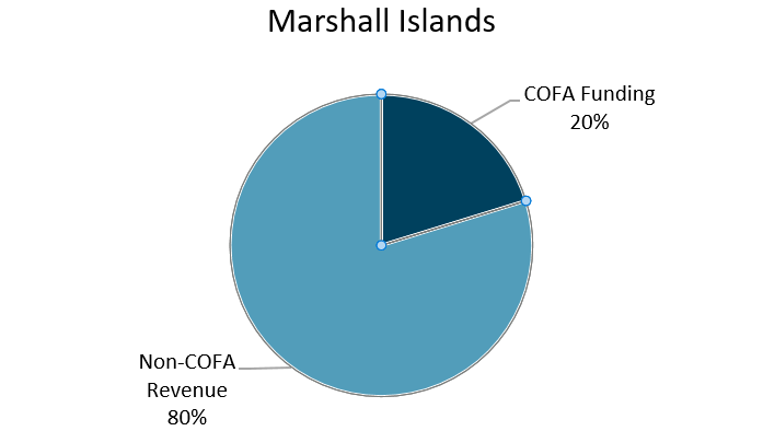 The COFA funding also makes up $35.2 million of the Marshall Islands national government's annual $173.9 million revenue as of fiscal year 2023.[57] The loss of COFA funding would expose the country to similar severe fiscal challenges as Palau and Micronesia.