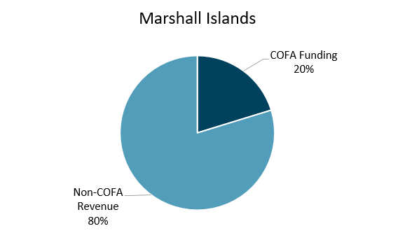 The COFA funding also makes up $35.2 million of the Marshall Islands national government's annual $173.9 million revenue as of fiscal year 2023.[59] The loss of COFA funding would expose the country to similar severe fiscal challenges as Palau and Micronesia.