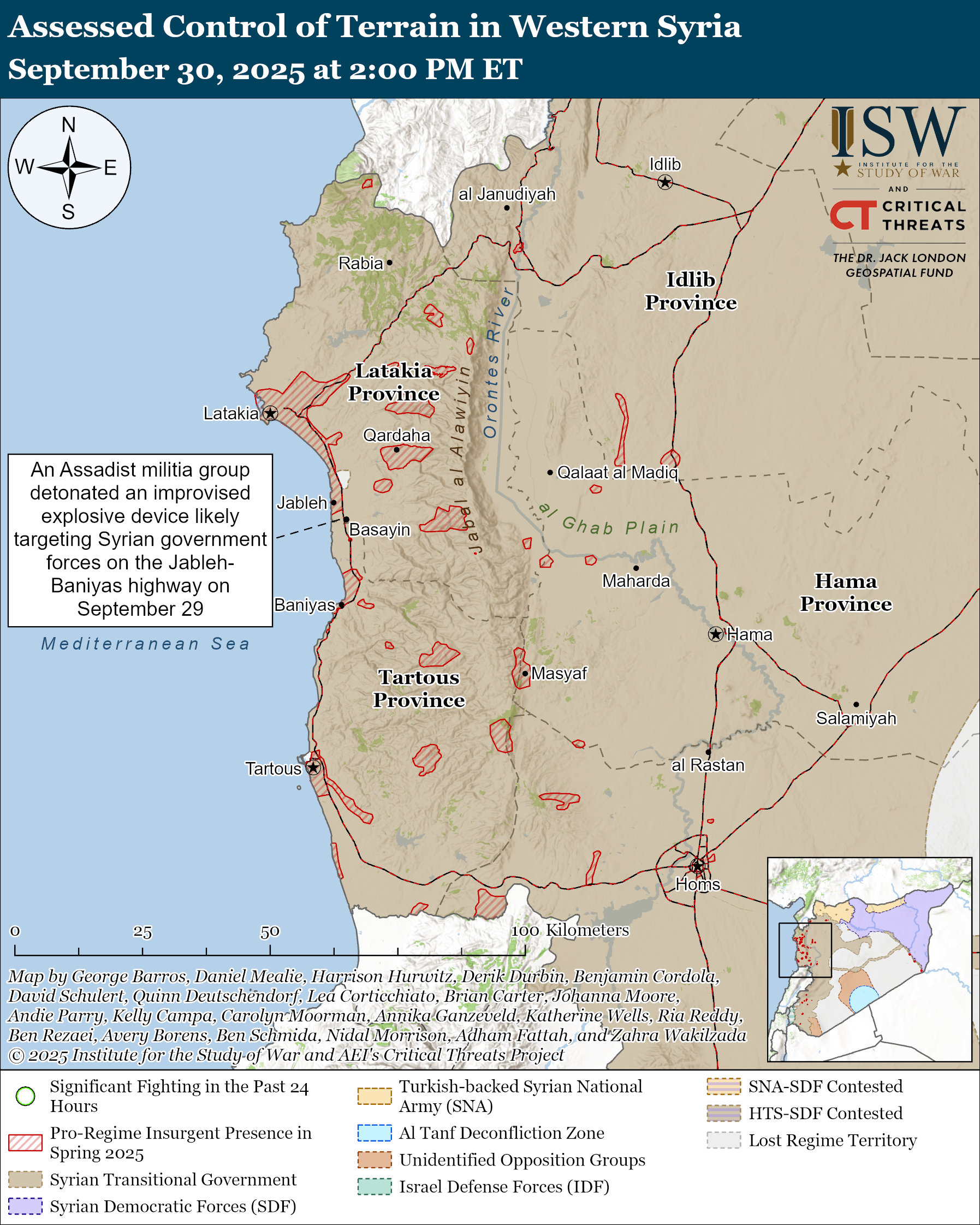 Turkey’s reported deployment of military assets to Kuweires Airbase may signal Turkey’s willingness to launch a military operation against the SDF if the SDF does not integrate into the Syrian state. Turkey has consistently threatened the SDF with military action since the MoD and SDF began continually engaging each other along the Deir Hafer salient in August.[xxiv] Syrian President Ahmed al Shara recently stated that he had persuaded Turkey to refrain from taking military action against the SDF until the end of the year, but the Turkish Defense Ministry said as recently as September 25 that SDF engagements with the Syrian MoD are a threat to "regional peace and stability.”[xxv]