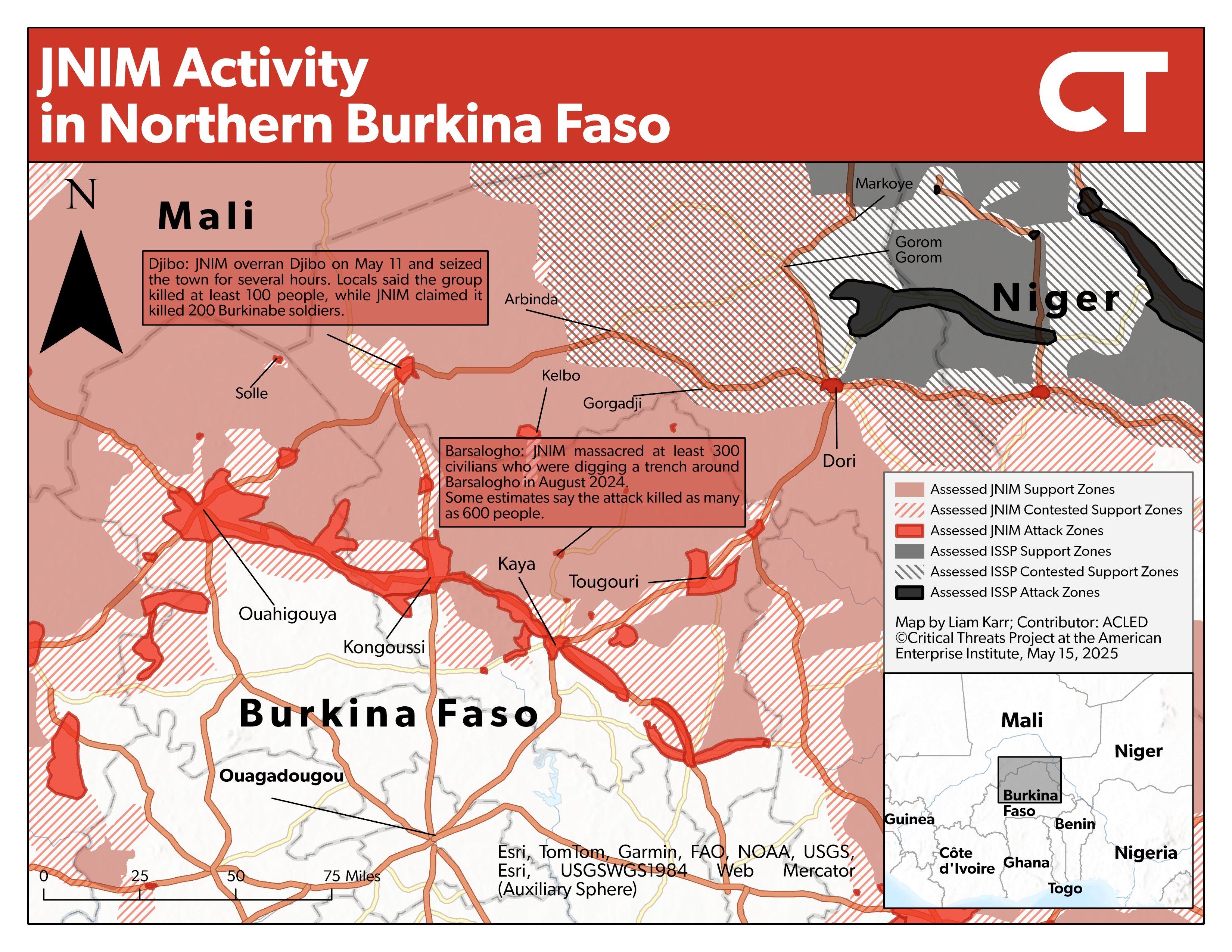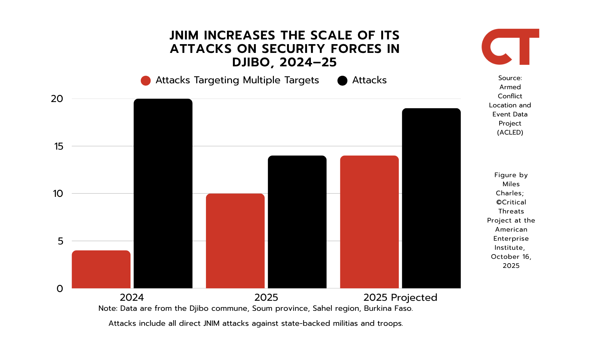 - Burkina Faso. Al Qaeda’s Sahelian affiliate Jama’at Nusrat al Islam wa al Muslimeen has escalated the scale and severity of its attacks on Djibo, Burkina Faso, throughout 2025, likely to consolidate cross-border support zones along the Burkina Faso–Mali border.