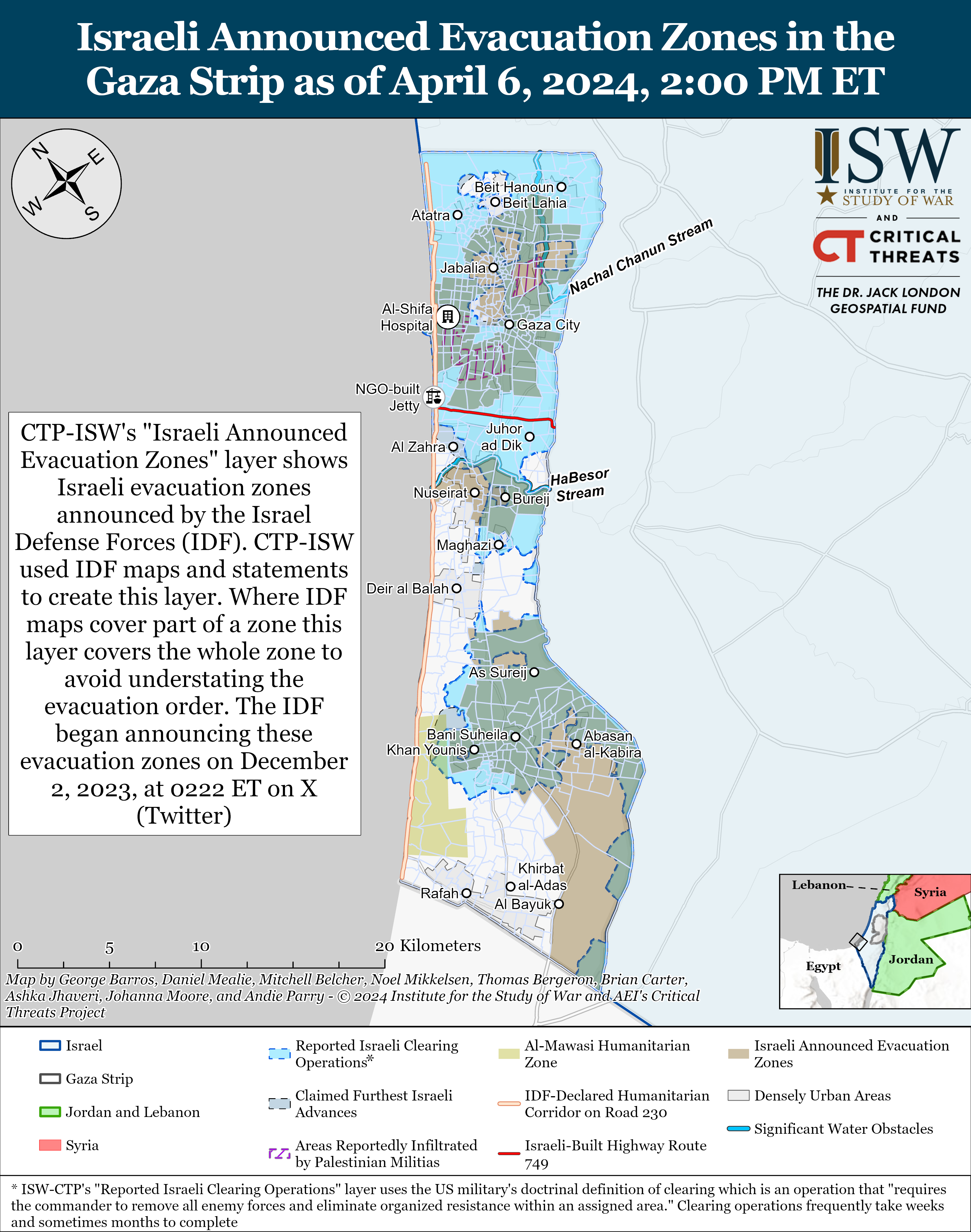 CTP-ISW will publish abbreviated updates on April 6 and 7, 2024. Detailed coverage will resume Monday, April 8, 2024.