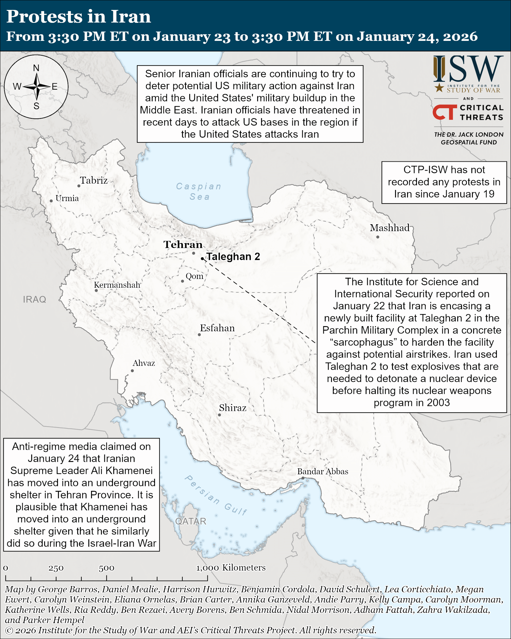 Note: CTP-ISW will publish updates on January 24 and 25 providing analysis about developments in Iran and Syria. We will resume full coverage on Monday, January 26.