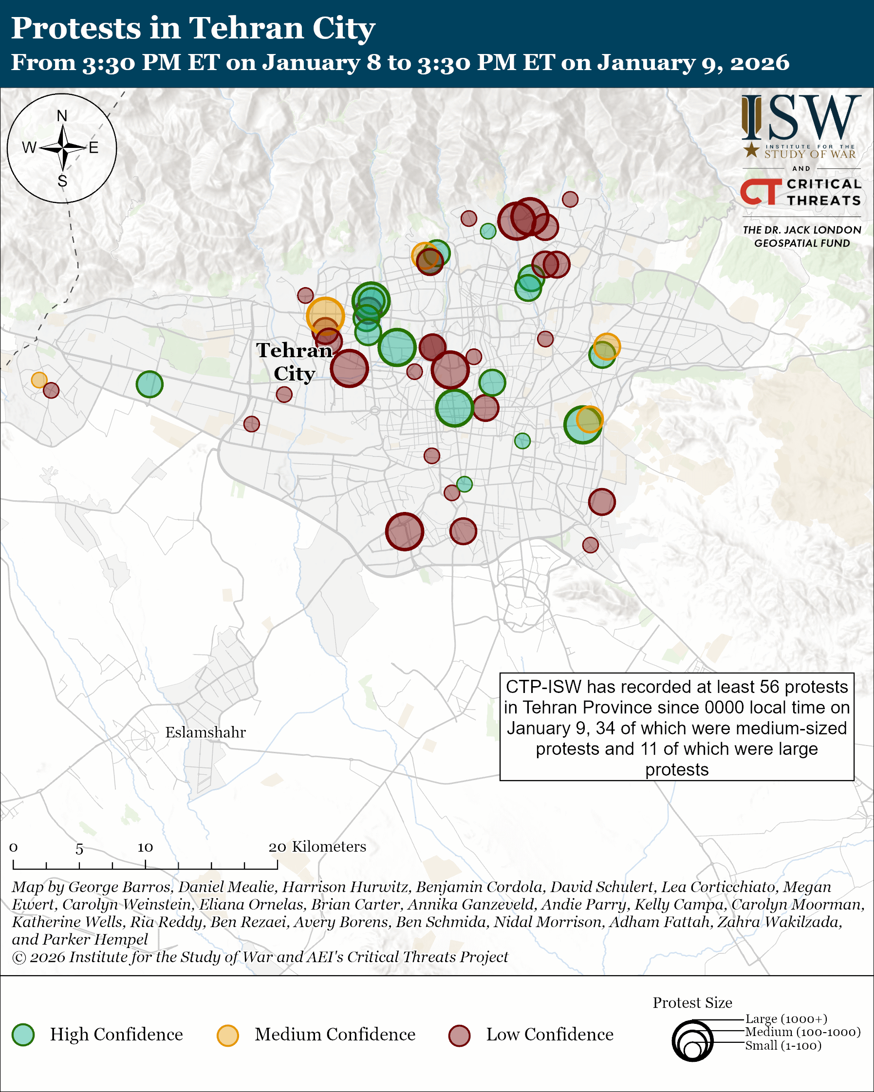 Click here to see ISW-CTP’s new interactive map showing the locations of daily protests in Iran since December 28, 2025. ISW-CTP will continue to publish daily static maps depicting the Iranian protests in forthcoming Iran Updates.