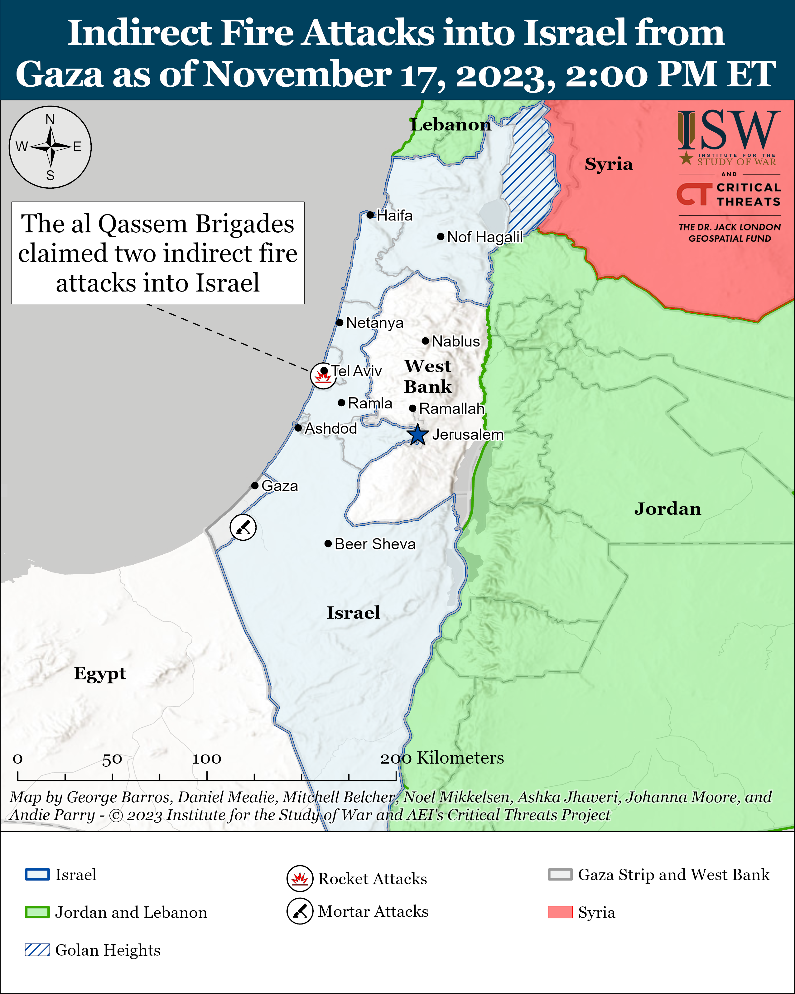 Note: CTP and ISW have refocused the update to cover the Israel-Hamas war. The new sections address developments in the Gaza Strip, the West Bank, Lebanon, and Syria, as well as noteworthy activity from Iran’s Axis of Resistance. We do not report in detail on war crimes because these activities are well-covered in Western media and do not directly affect the military operations we are assessing and forecasting. We utterly condemn violations of the laws of armed conflict and the Geneva Conventions and crimes against humanity even though we do not describe them in these reports.