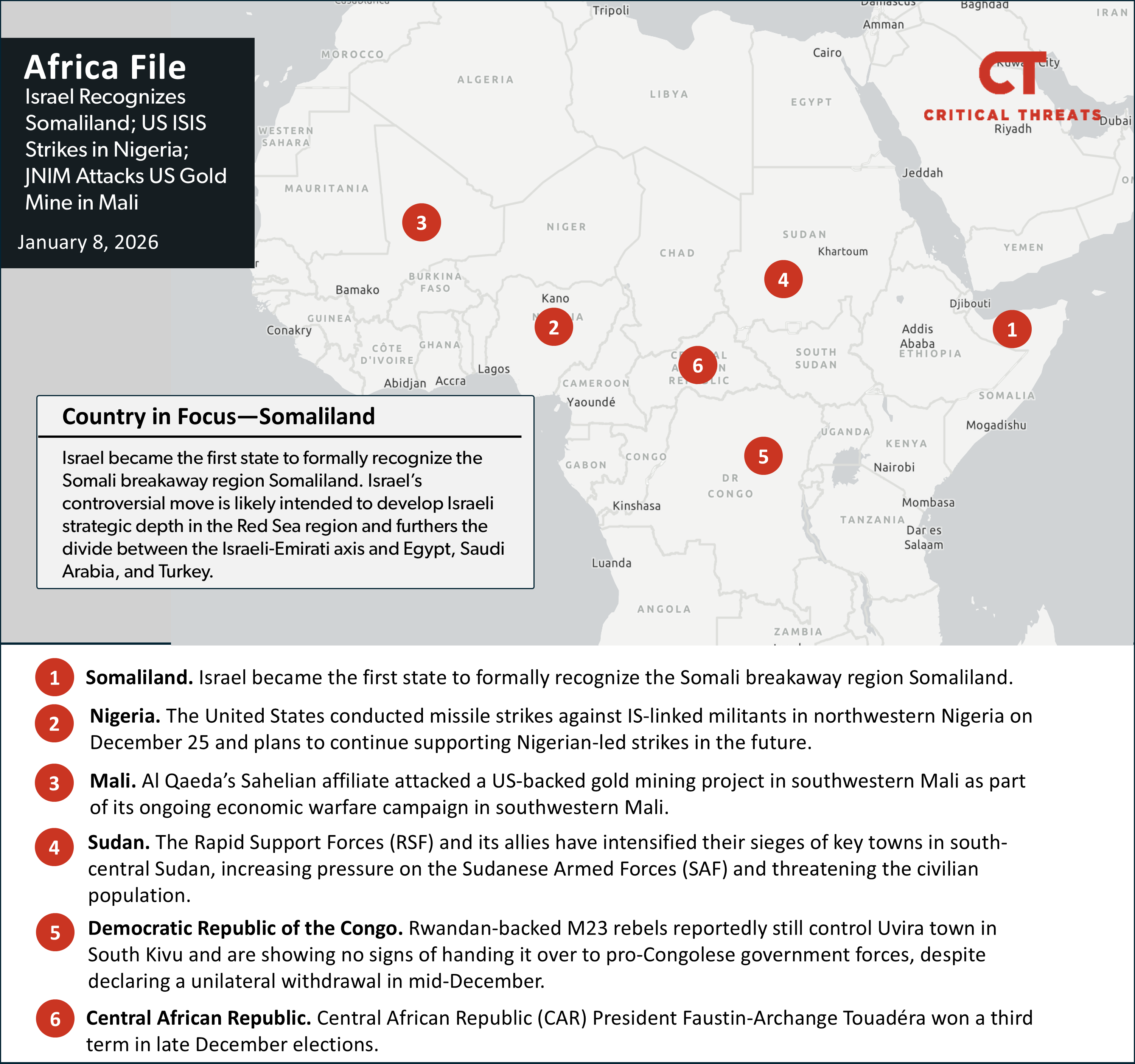 Israel Recognizes Somaliland; US ISIS Strikes in Nigeria; JNIM Attacks US Gold Mine in Mali: Africa File, January 8, 2026