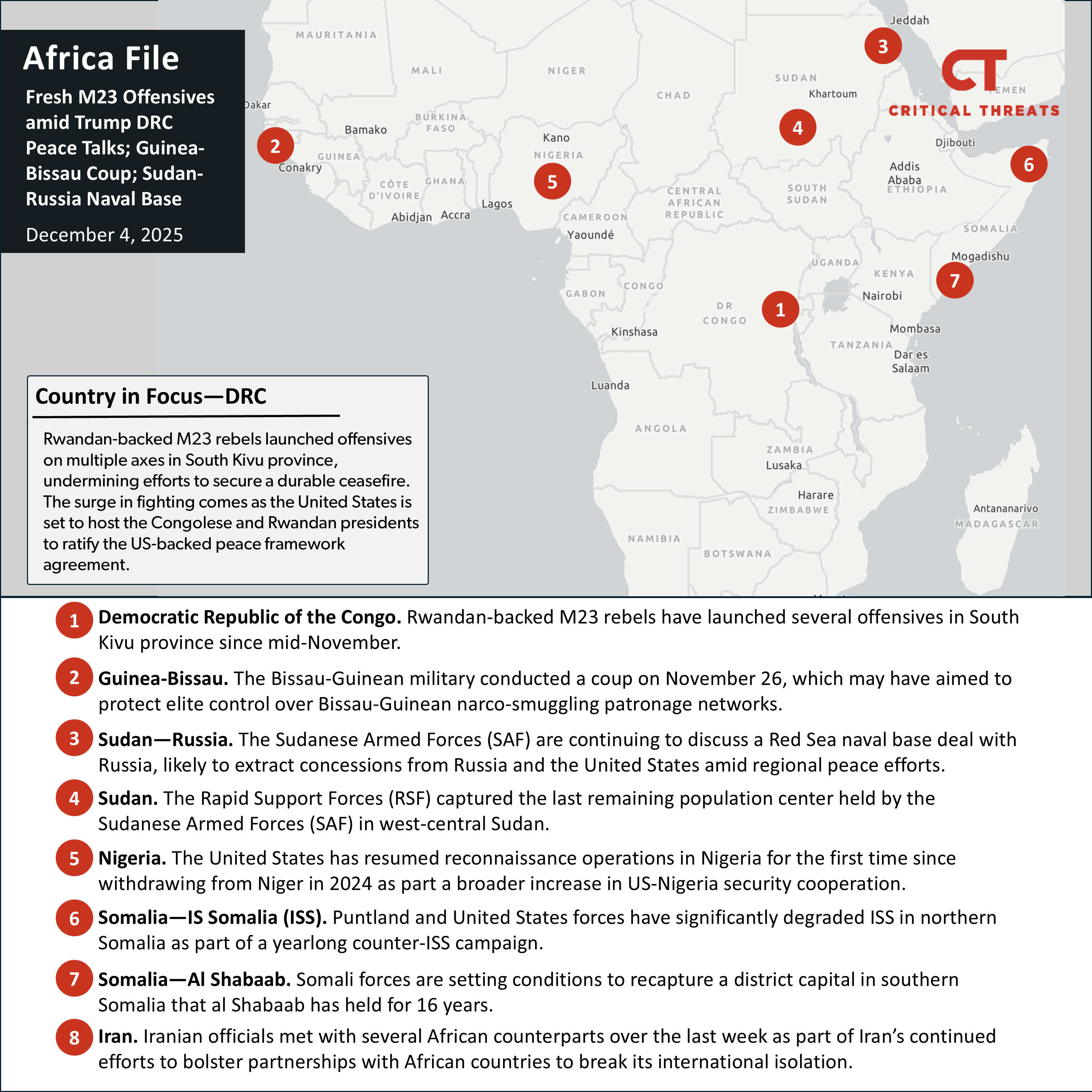 Fresh M23 Offensives amid Trump DRC Peace Talks; Guinea-Bissau Coup; Sudan-Russia Naval Base: Africa File, December 4, 2025