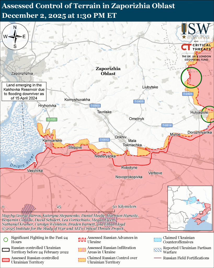 Note: The data cutoff for this product was 1:30 PM ET on December 2, except for reports about the December 2 US-Russia meeting in Moscow. ISW will cover subsequent reports in the December 3 Russian Offensive Campaign Assessment.