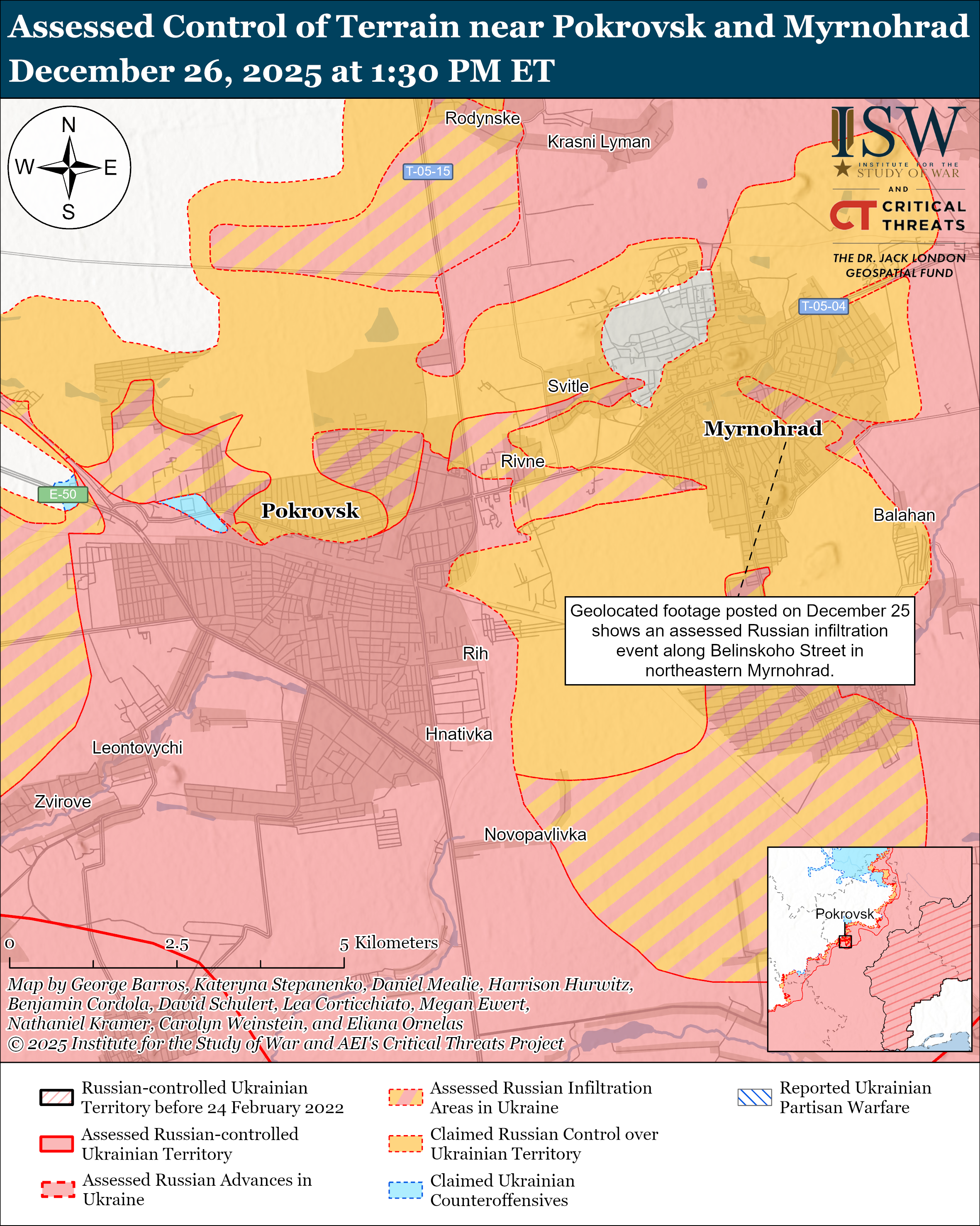 Note: The data cut-off for this product was 12:45pm ET on December 26. ISW will cover subsequent reports in the December 27 Russian Offensive Campaign Assessment.