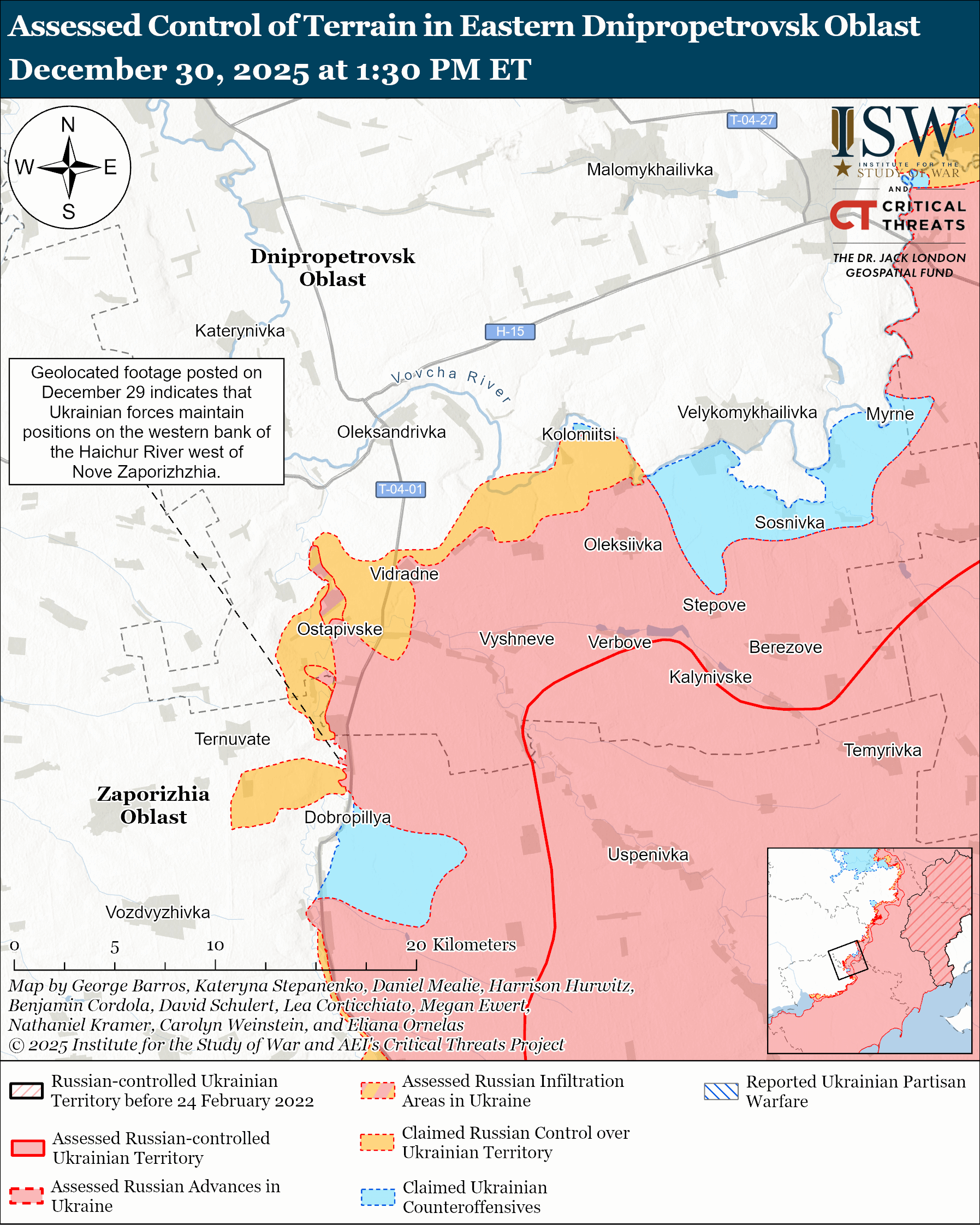 [95] https://t.me/rybar/76367; https://t.me/rybar/76369; https://understandingwar.org/research/russia-ukraine/russian-offensive-campaign-assessment-december-29-2025/