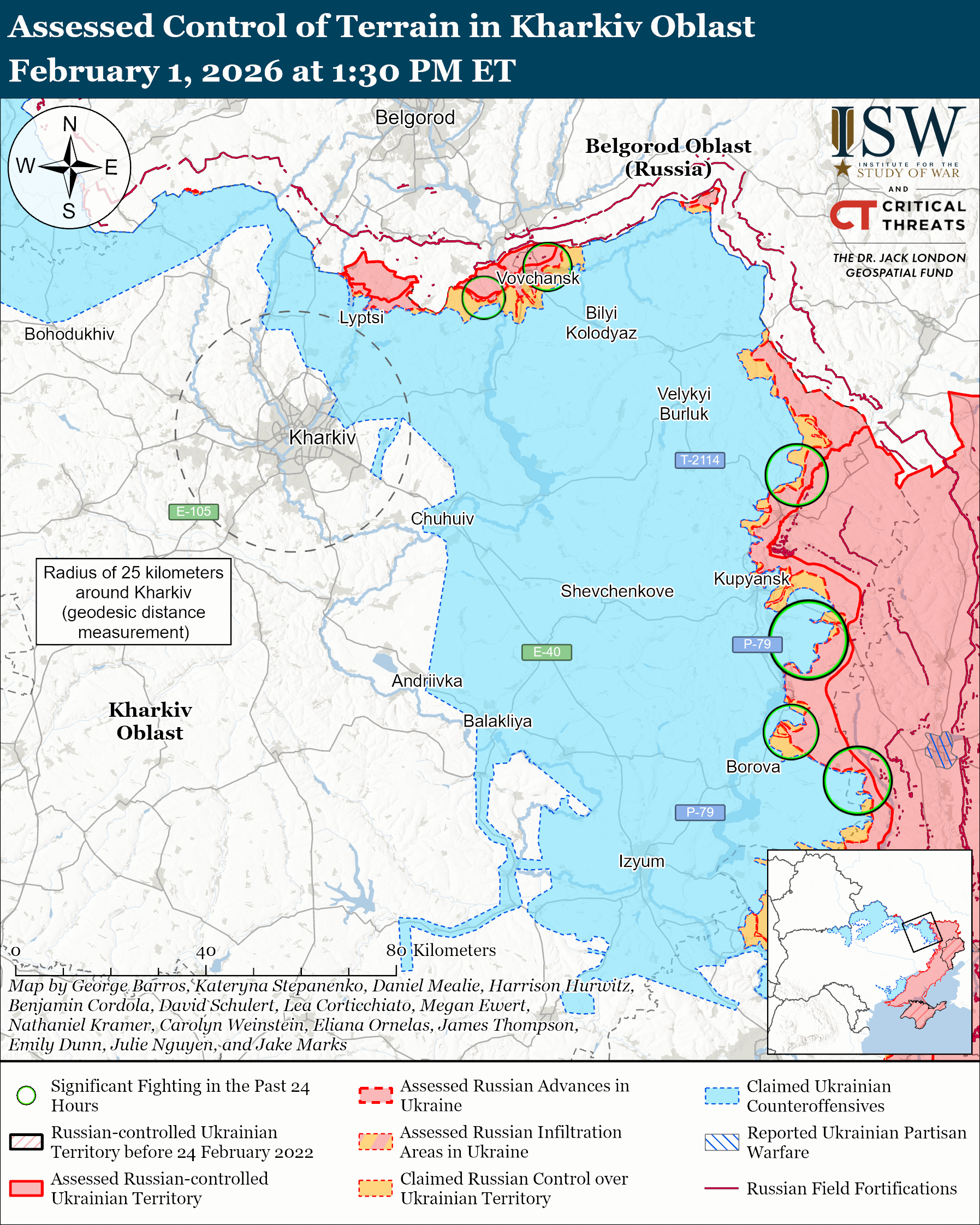 Russian Subordinate Main Effort #1 – Kharkiv Oblast (Russian objective: Push Ukrainian forces back from the international border to create a defensible buffer zone with Belgorod Oblast and approach to within tube artillery range of Kharkiv City)