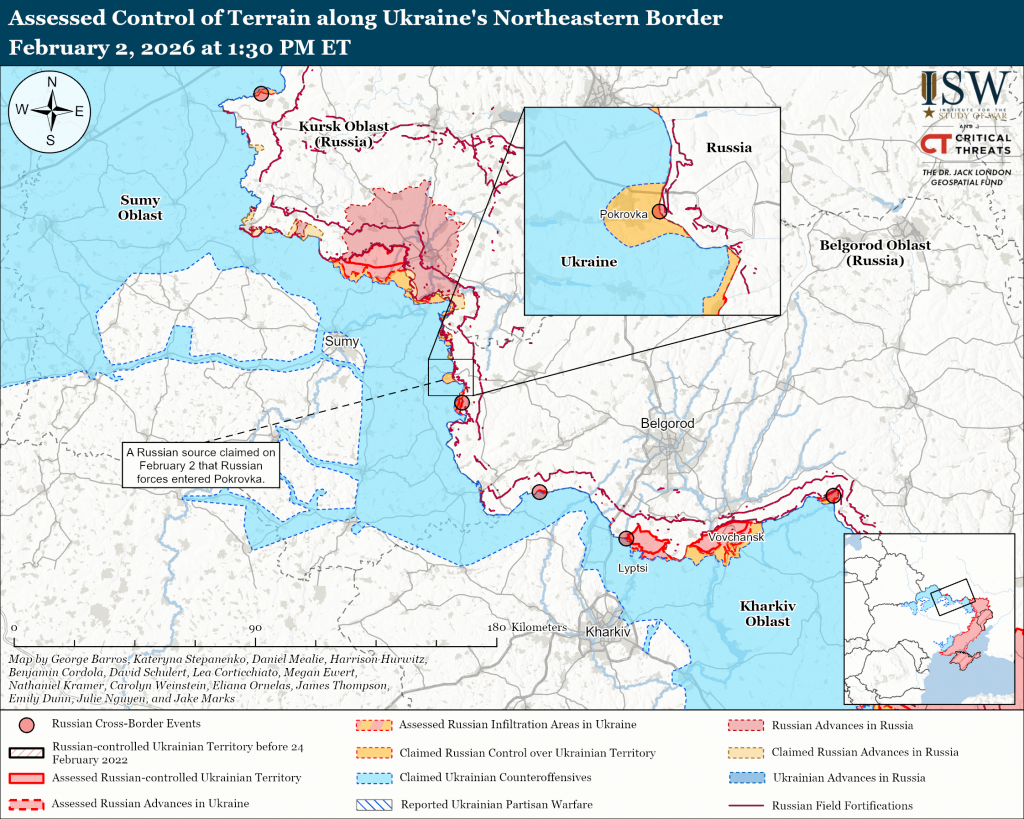 Russian forces continued offensive operations in northern Sumy Oblast on February 2 but did not make confirmed advances.