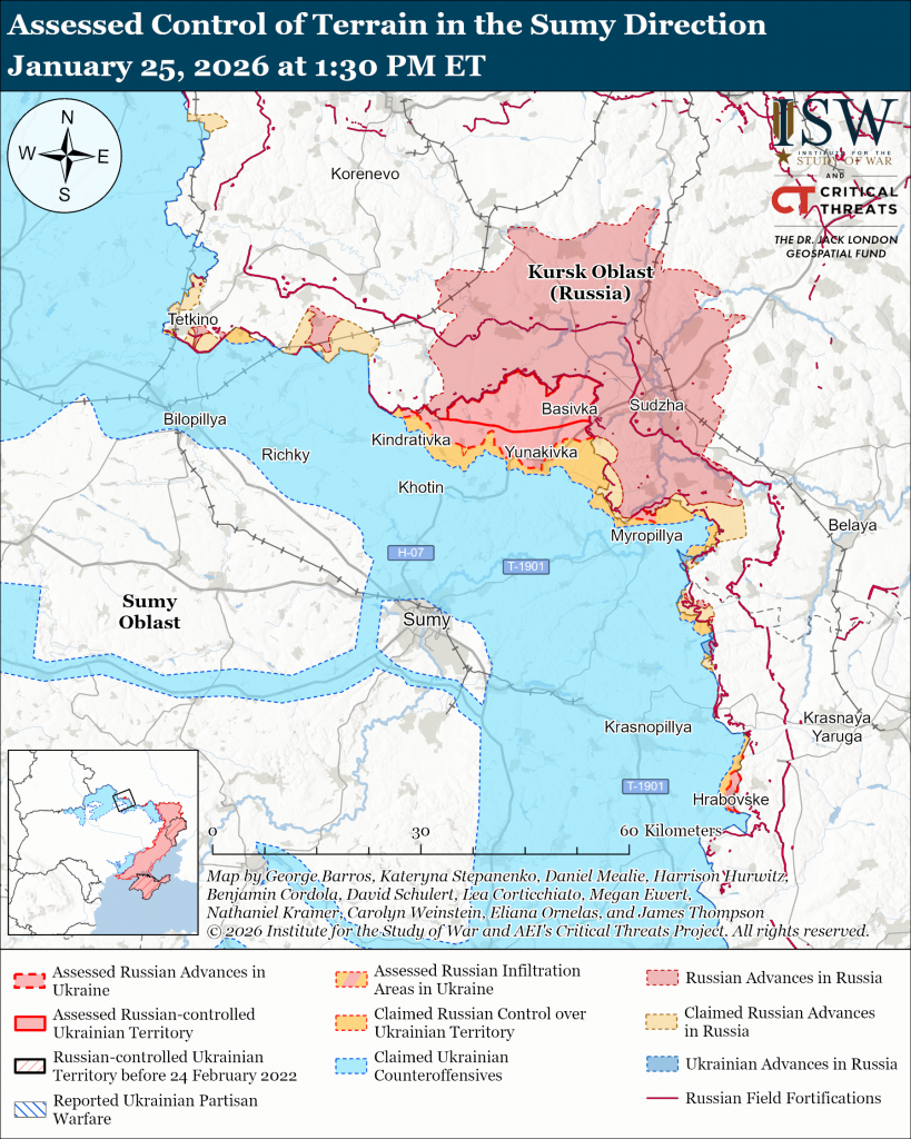 [iv] https://understandingwar.org/research/russia-ukraine/russian-offensive-campaign-assessment-january-24-2026/; https://understandingwar.org/research/russia-ukraine/russian-offensive-campaign-assessment-january-23-2026/ ; https://understandingwar.org/research/russia-ukraine/russian-offensive-campaign-assessment-december-27-2025/ ; https://understandingwar.org/research/russia-ukraine/russian-offensive-campaign-assessment-december-26-2025/