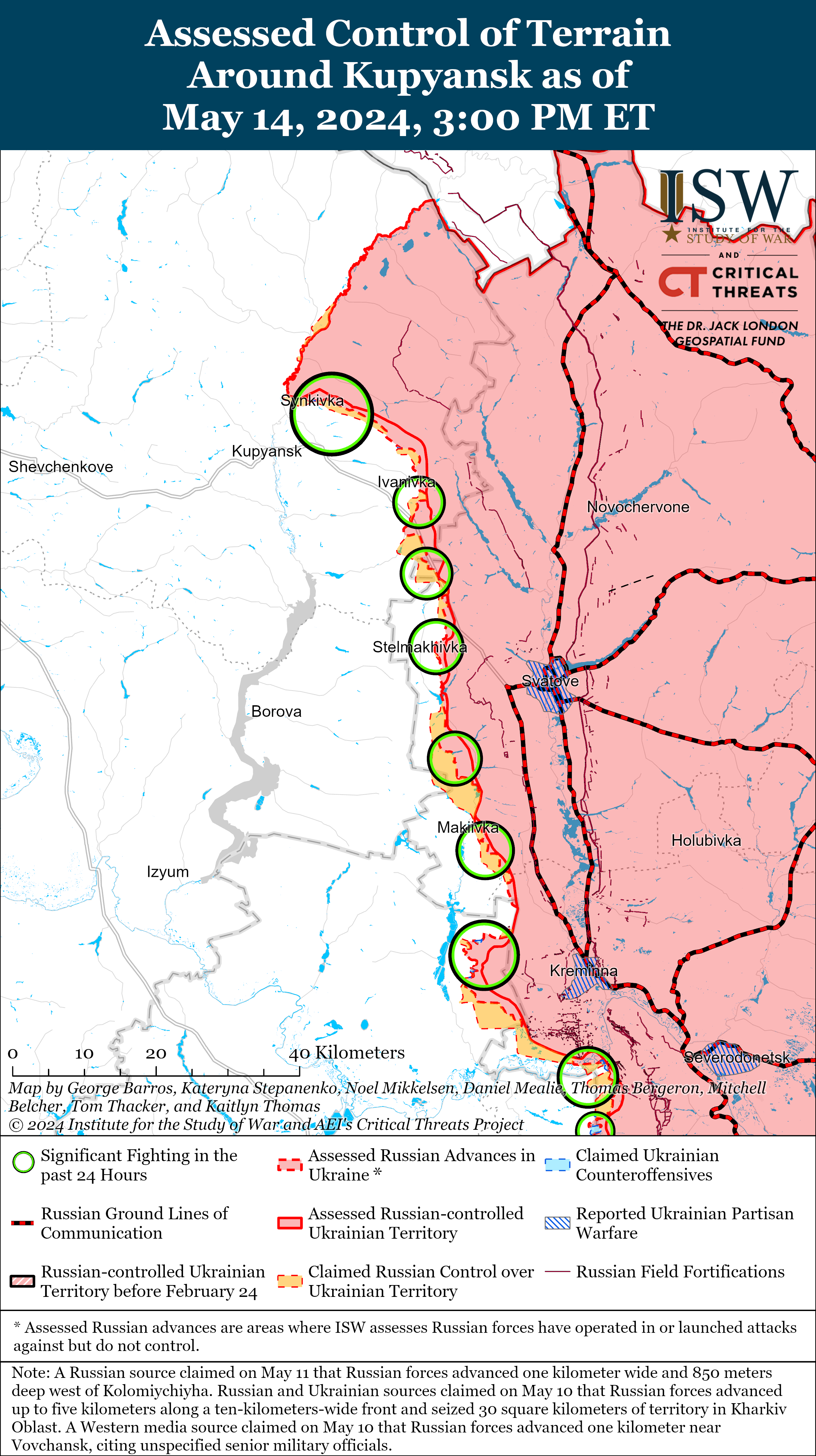 Note: The data cut-off for this product was 3:15pm ET on May 14. ISW will cover subsequent reports in the May 15 Russian Offensive Campaign Assessment.