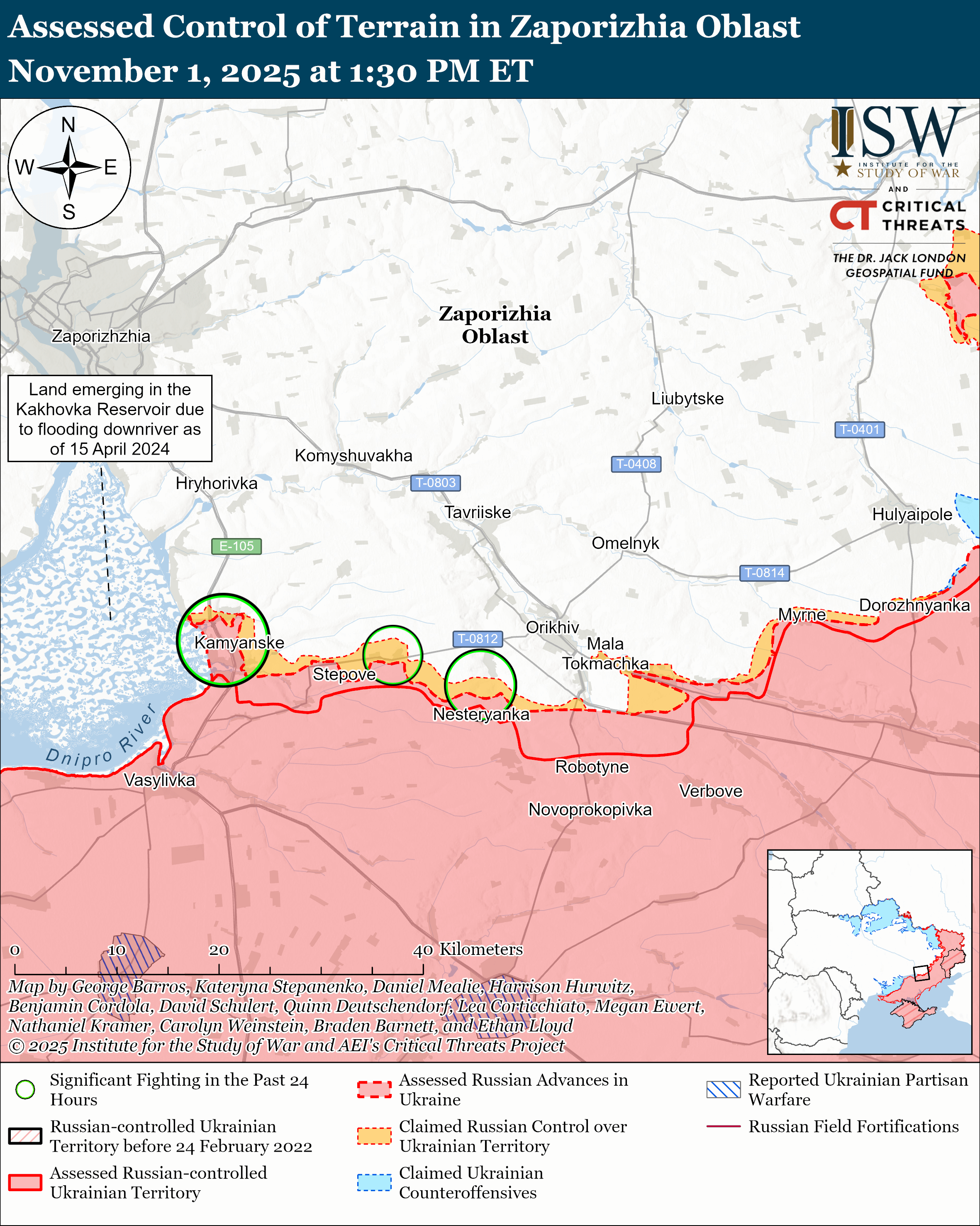 Note: The data cut-off for this product was 12:15 pm ET on November 1. ISW will cover subsequent reports in the November 2 Russian Offensive Campaign Assessment.