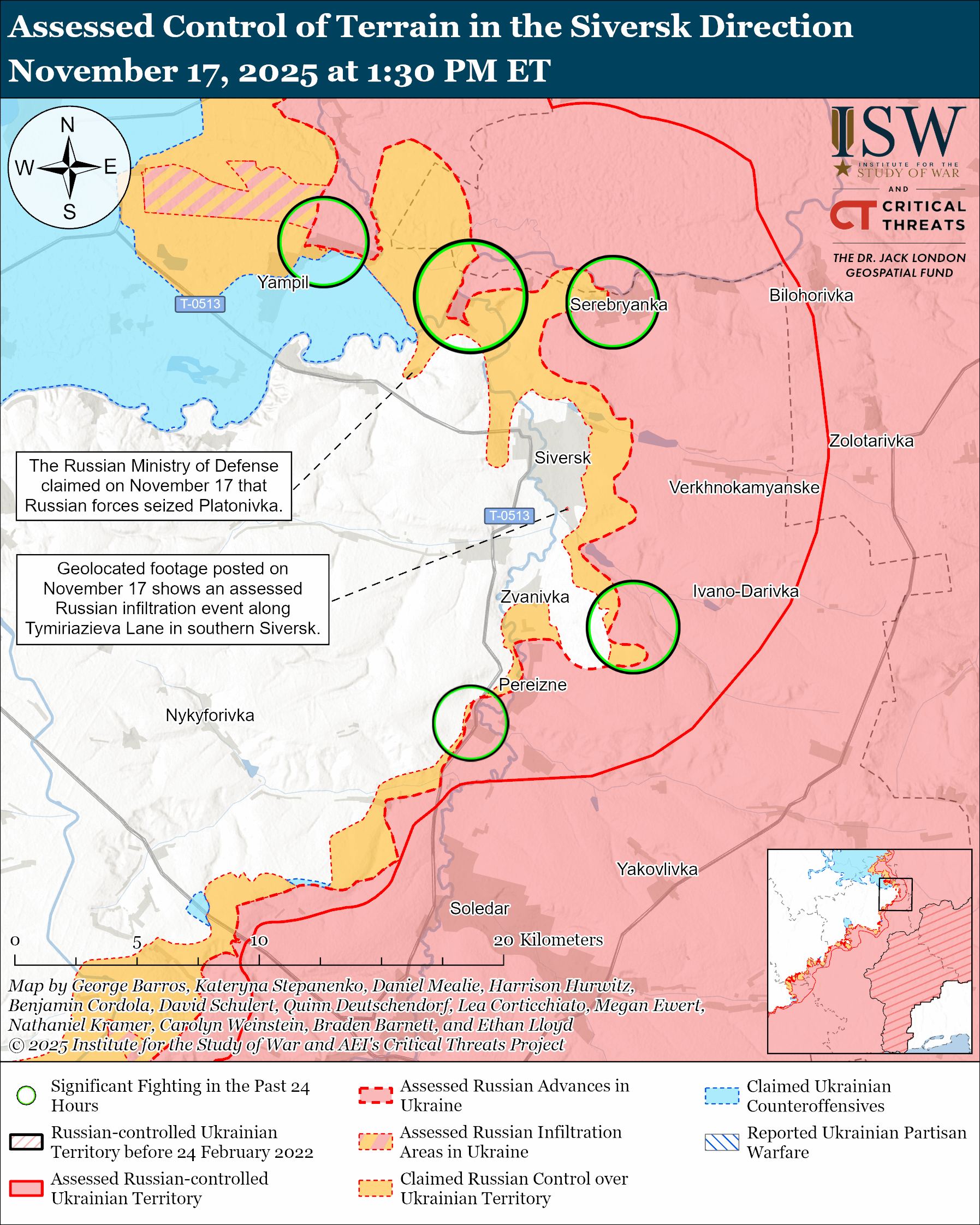 Russian forces continued offensive operations in the Siversk direction on November 17 but did not make any confirmed advances.