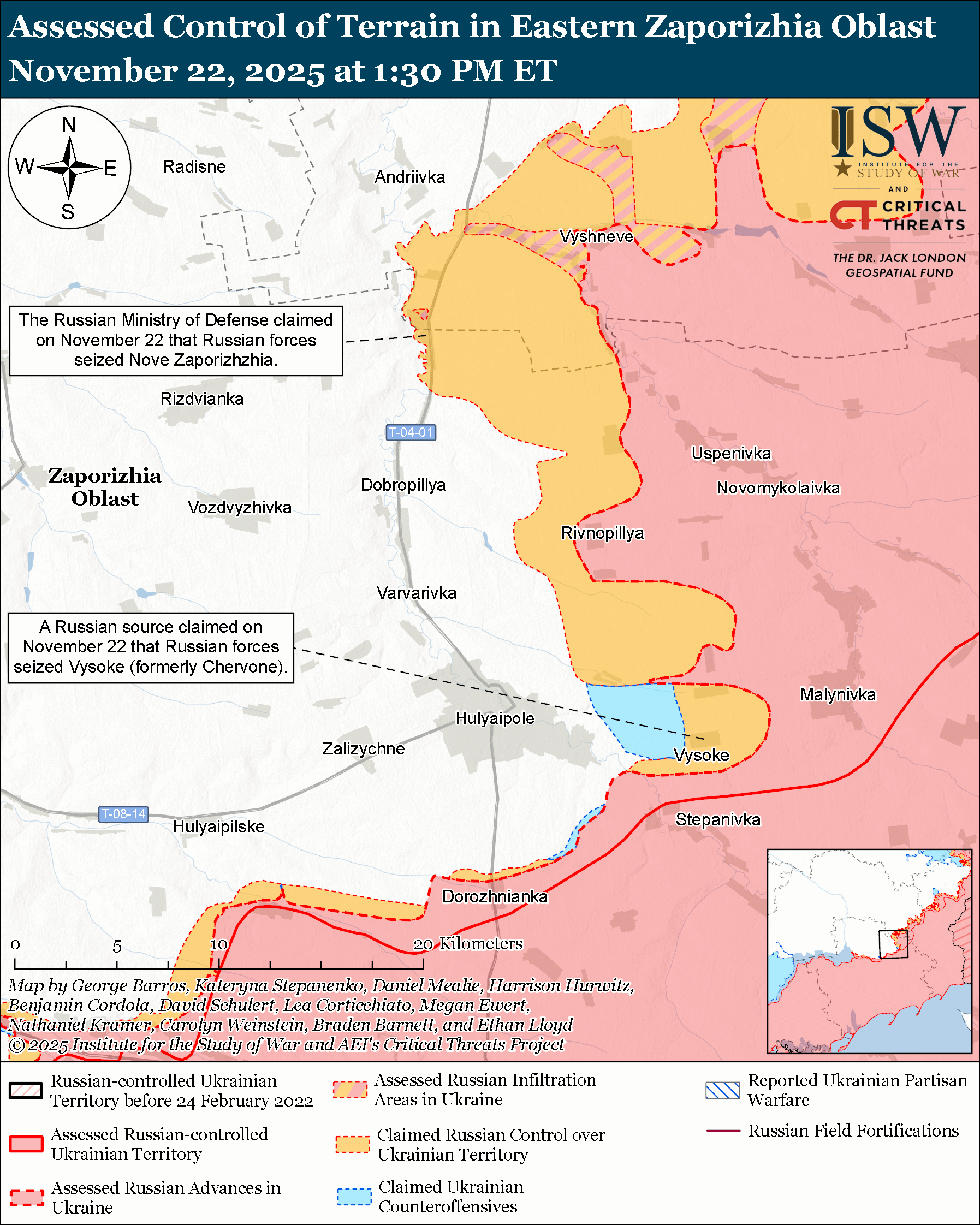 Note: The data cut-off for this product was 12:45 pm ET on November 22. ISW will cover subsequent reports in the November 23 Russian Offensive Campaign Assessment.