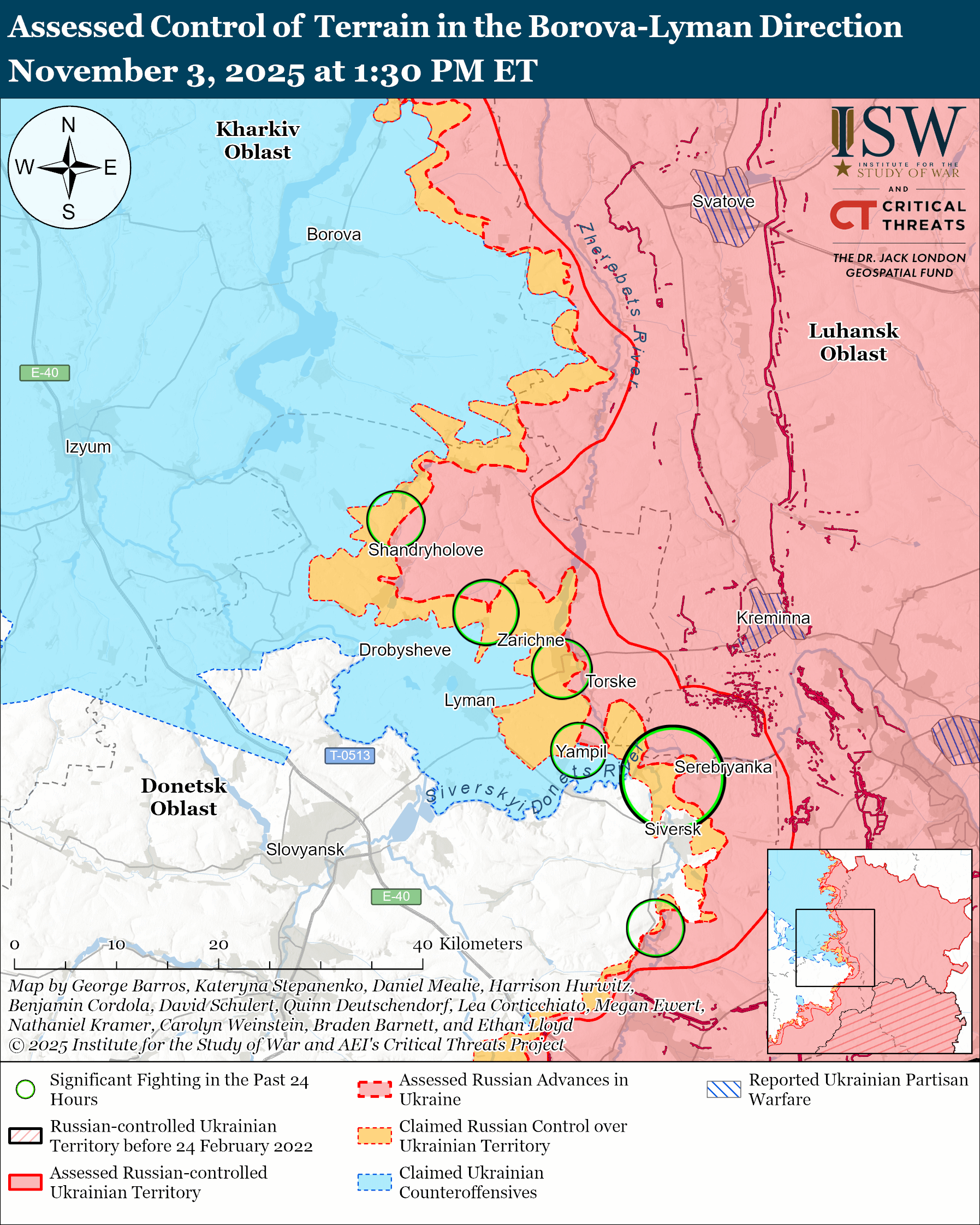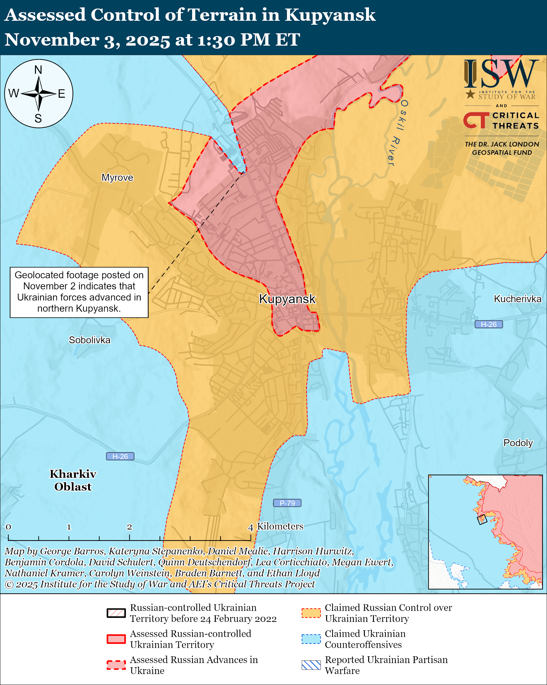 [11] https://understandingwar.org/research/russia-ukraine/russian-offensive-campaign-assessment-october-30-2025/; https://understandingwar.org/research/russia-ukraine/russian-offensive-campaign-assessment-november-2-2025/; https://understandingwar.org/research/russia-ukraine/russian-offensive-campaign-assessment-october-31-2025/; https://understandingwar.org/research/russia-ukraine/russian-offensive-campaign-assessment-october-28-2025/