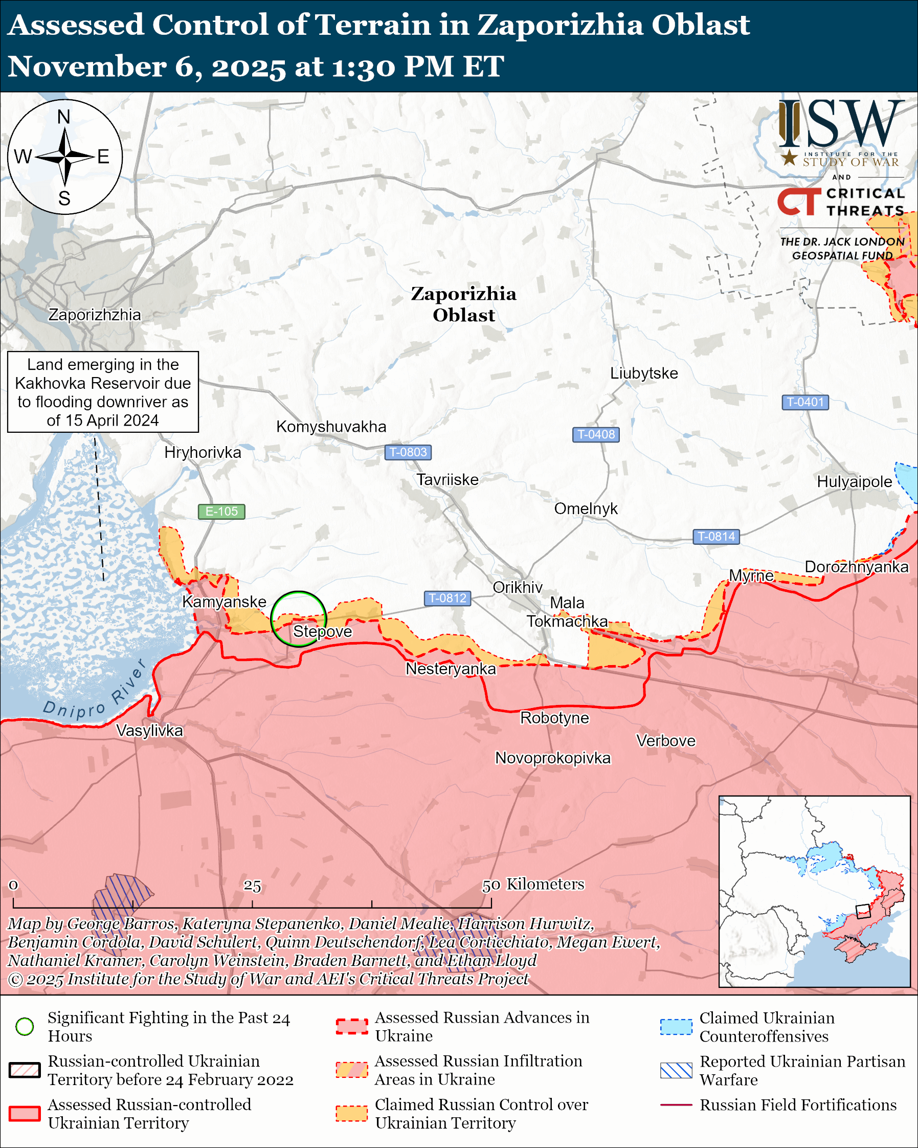 Note: The data cut-off for this product was 12:15 pm ET on November 6. ISW will cover subsequent reports in the November 7 Russian Offensive Campaign Assessment.