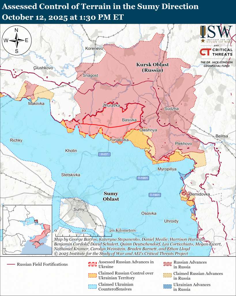 Russian forces continued offensive operations in northern Sumy Oblast on October 12 but did not advance.