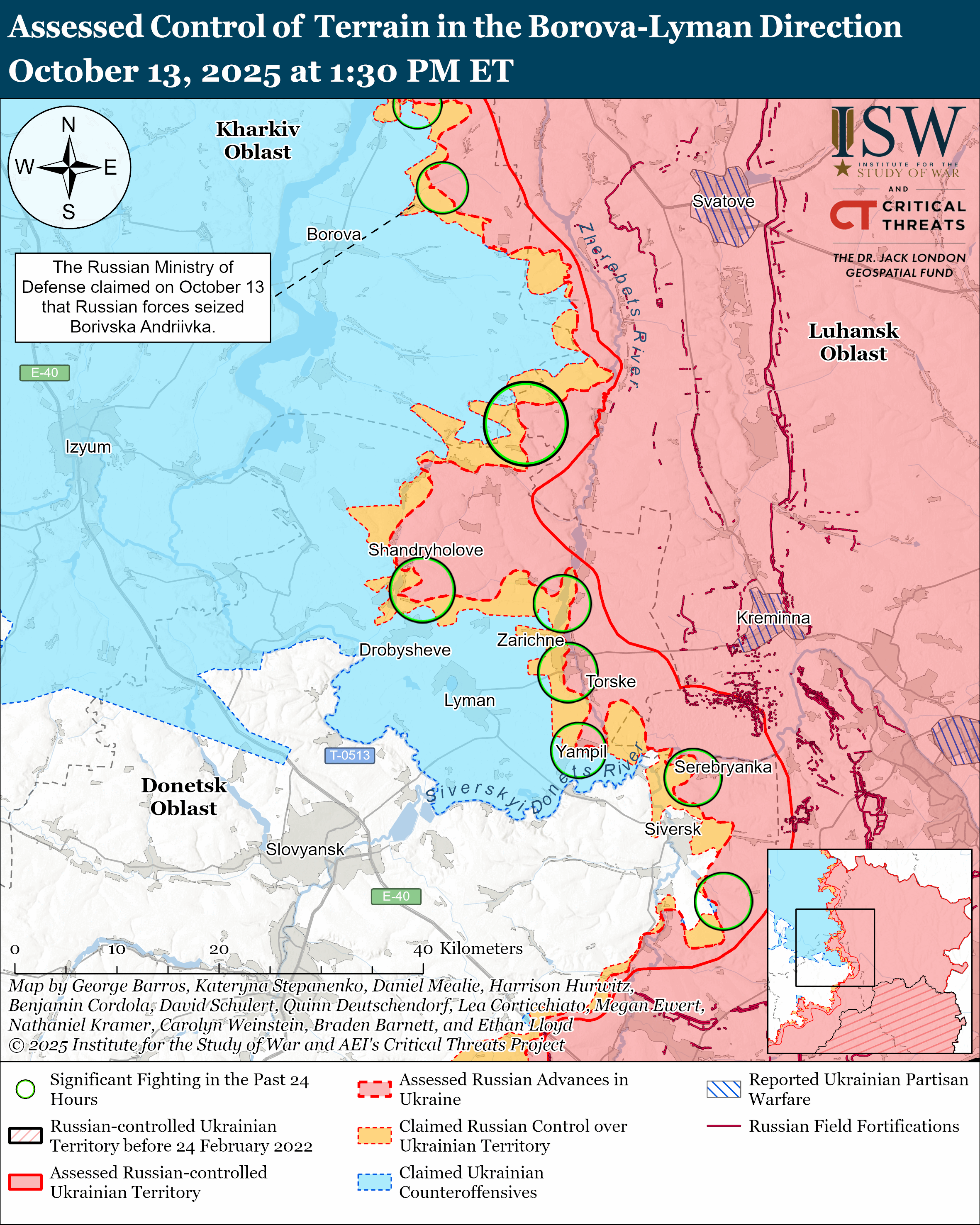 Russian forces continued offensive operations in the Borova direction on October 13 but did not make confirmed advances.