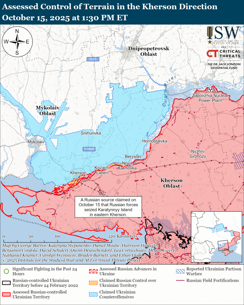 Note: The data cut-off for this product was 12:15 pm ET on October 15. ISW will cover subsequent reports in the October 16 Russian Offensive Campaign Assessment.