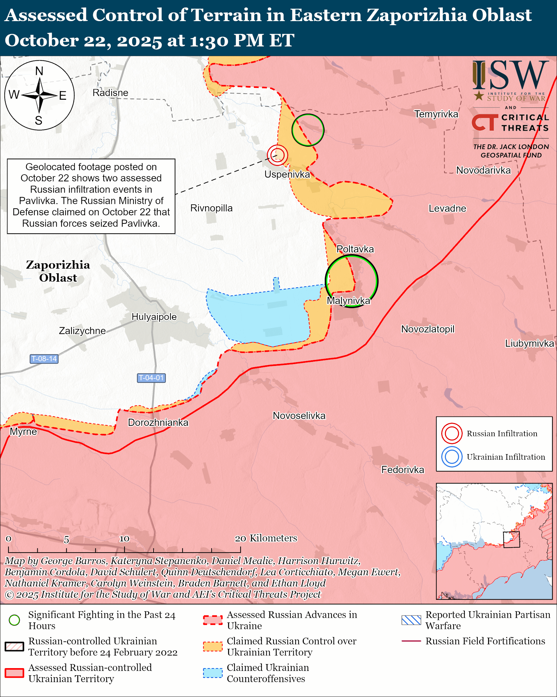 Note: The data cut-off for this product was 12:30 pm ET on October 22. ISW will cover subsequent reports in the October 23 Russian Offensive Campaign Assessment.