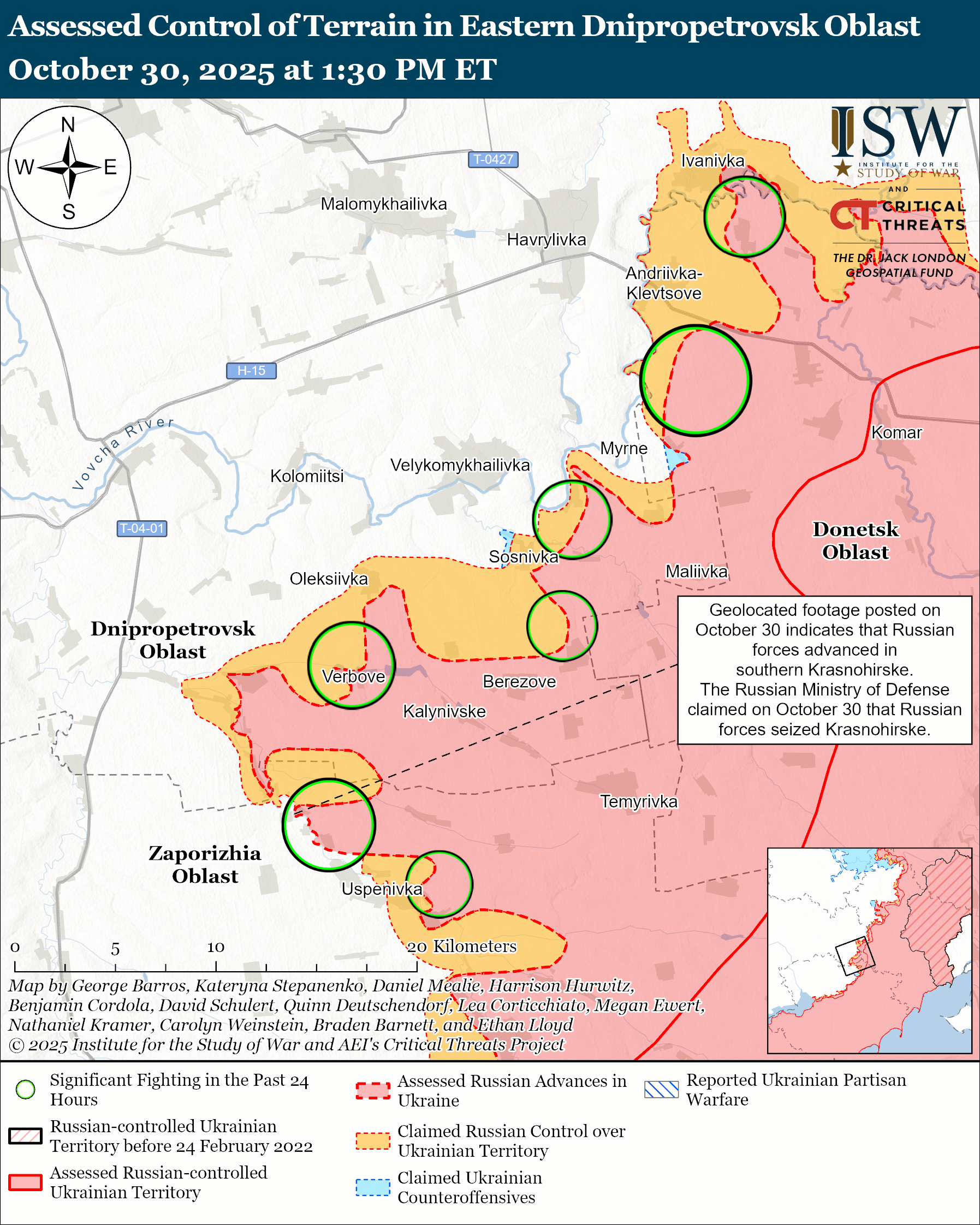 Note: The data cut-off for this product was 12:45 pm ET on October 30. ISW will cover subsequent reports in the October 31 Russian Offensive Campaign Assessment.