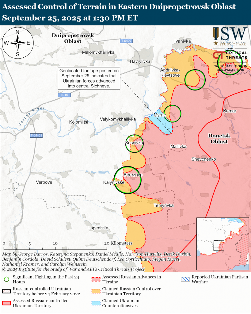 Note: The data cut-off for this product was 1:30 pm ET on September 25. ISW will cover subsequent reports in the September 26 Russian Offensive Campaign Assessment.