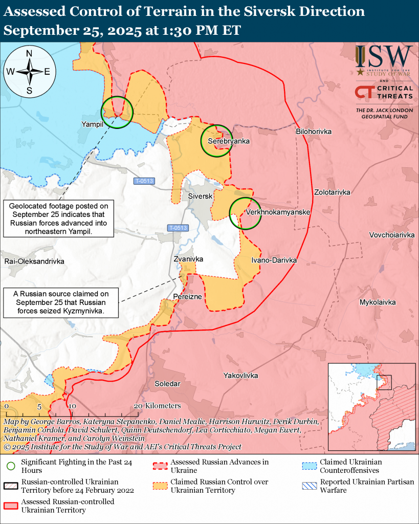 Russian forces continued offensive operations in the Siversk direction on September 25 but did not make confirmed advances.