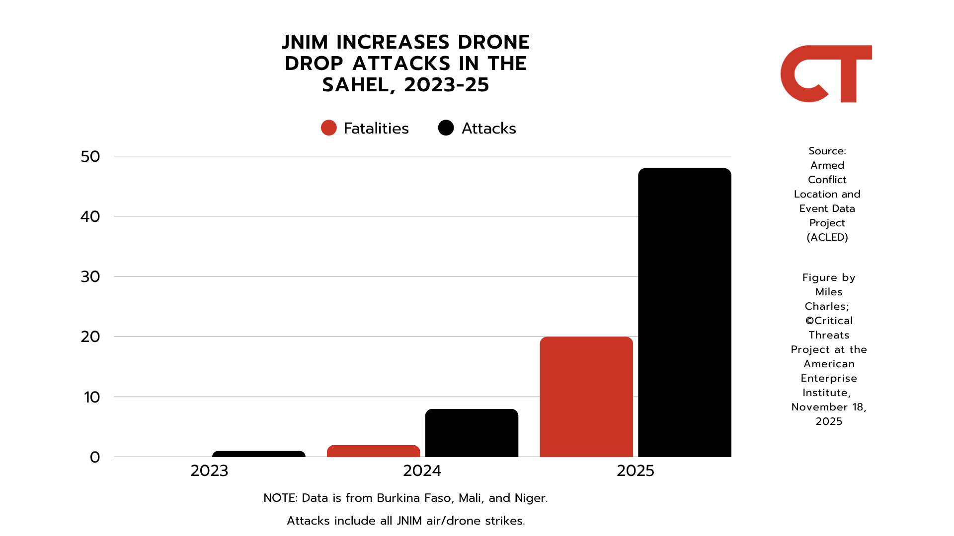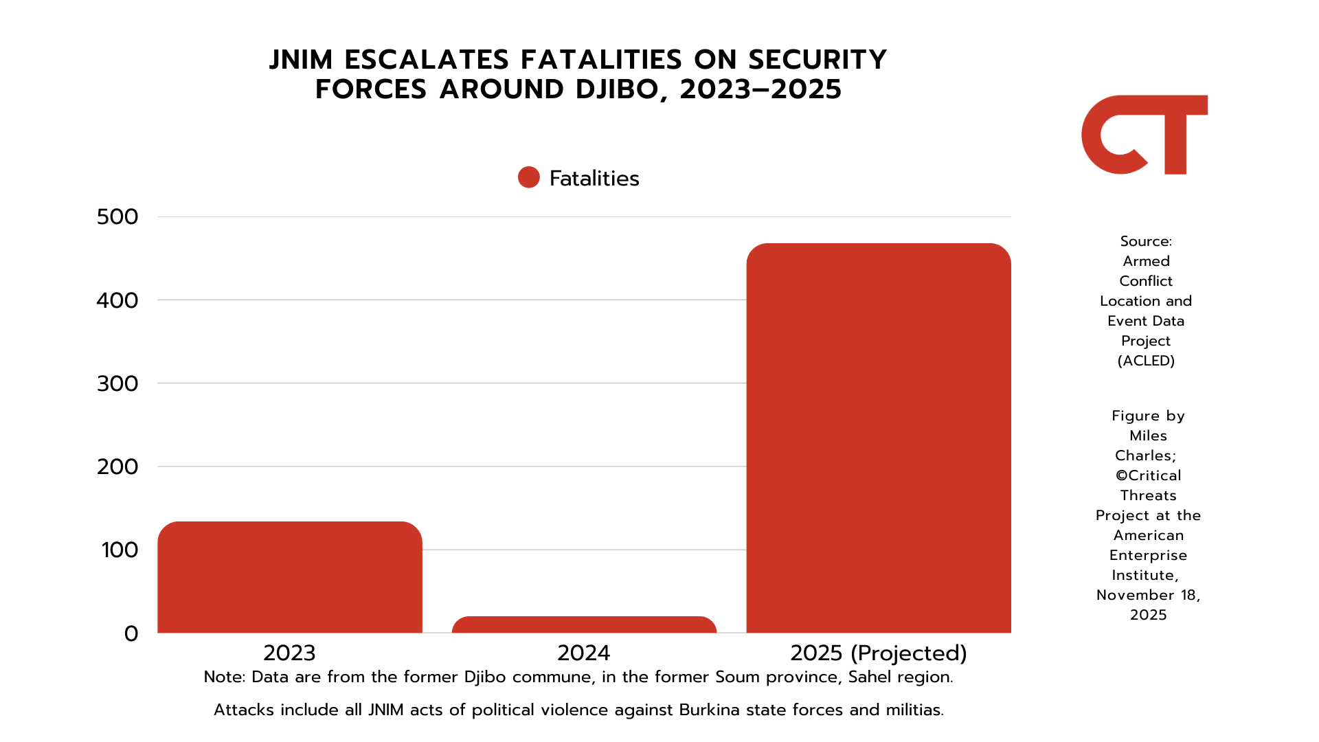 Figure 12. JNIM Escalates Fatalities on Security Forces around Djibo, 2023–2025