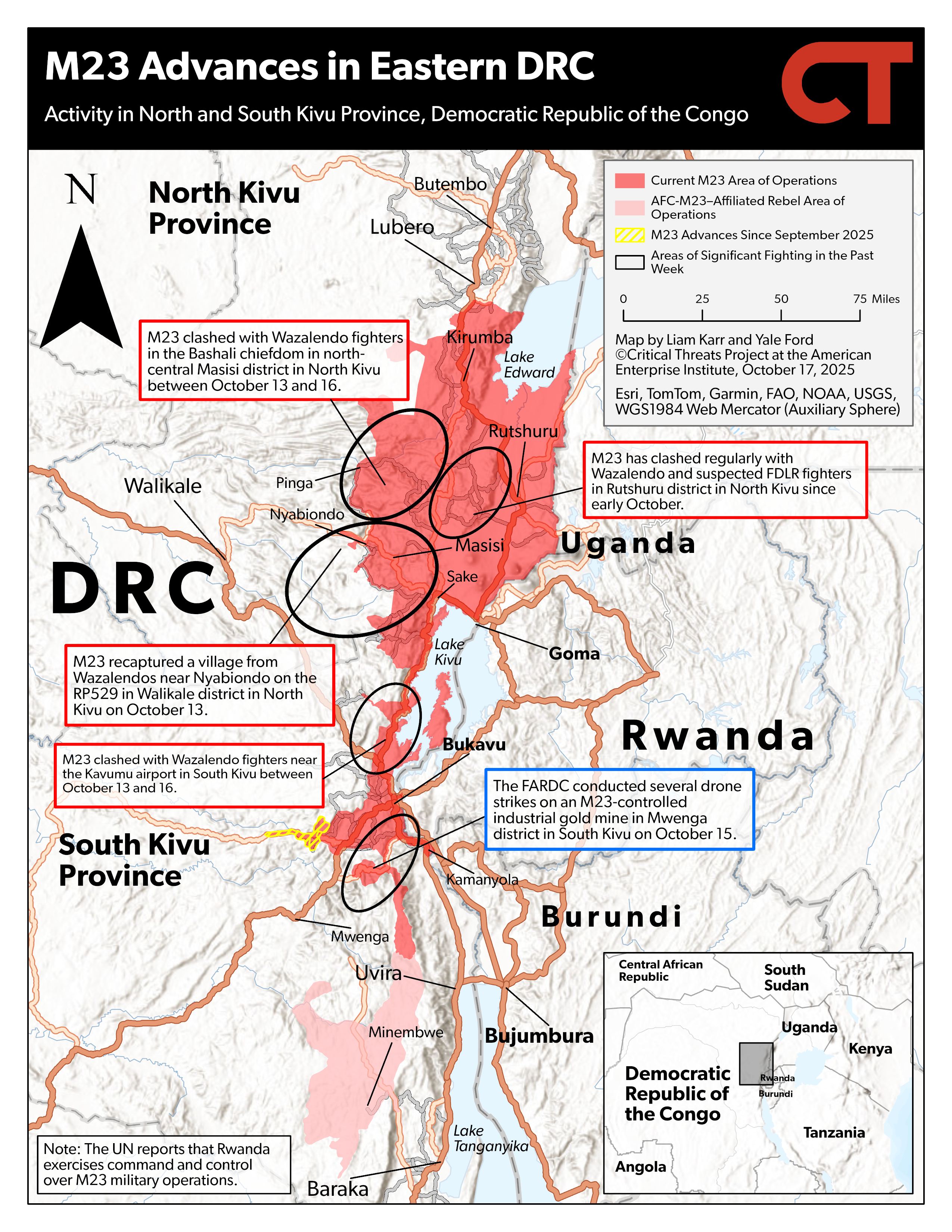 [vii] https://actualite dot cd/index.php/2025/10/10/walikale-les-rebelles-de-lafcm23-perdent-quatre-positions-sur-les-cinq-installees-kibati; https://actualite dot cd/2025/10/10/walikale-nouveaux-combats-entre-les-rebelles-de-lafcm23-et-les-wazalendo-kibati-ce; https://x.com/KivuMorningPost/status/1976576079880974685; https://x.com/HeritierBarak/status/1976622725256171920; https://x.com/AganzeRafiki/status/1976616047131214203; https://x.com/byobe_malenga/status/1976584514353668498