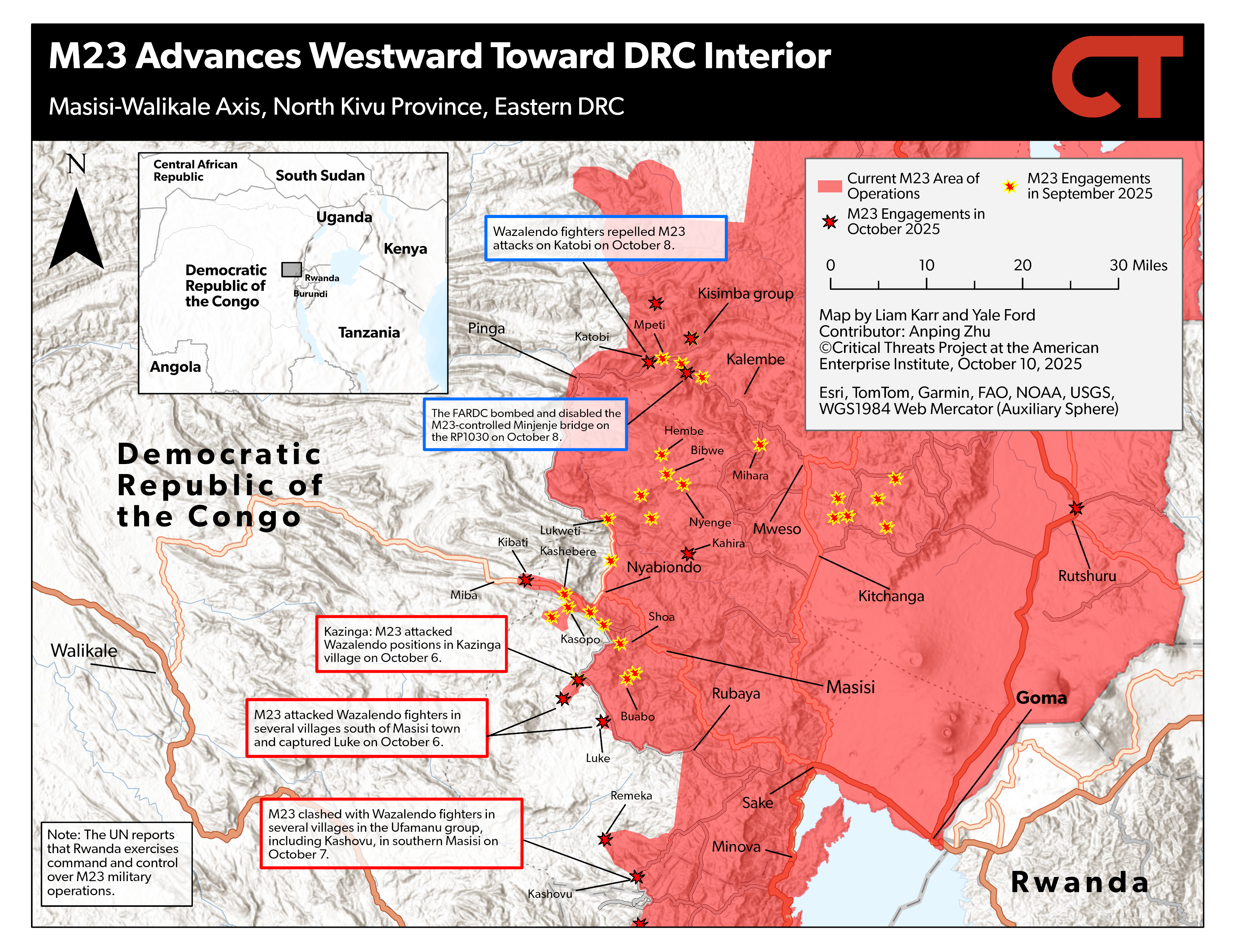 [vii] https://actualite dot cd/index.php/2025/10/10/walikale-les-rebelles-de-lafcm23-perdent-quatre-positions-sur-les-cinq-installees-kibati; https://actualite dot cd/2025/10/10/walikale-nouveaux-combats-entre-les-rebelles-de-lafcm23-et-les-wazalendo-kibati-ce; https://x.com/KivuMorningPost/status/1976576079880974685; https://x.com/HeritierBarak/status/1976622725256171920; https://x.com/AganzeRafiki/status/1976616047131214203; https://x.com/byobe_malenga/status/1976584514353668498